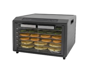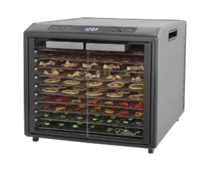 Un nouveau modèle vient de s’ajouter à la gamme des déshydrateurs alimentaires Excalibur. On connaissait les modèles 4, 5 et 9 plateaux avec cage en plastique, voilà un déshydrateur en inox avec 9 plateaux et avec minuteur. L’extérieur de la cage est en inox, l’intérieur de la cage est