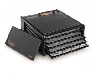 Ce déshydrateur fait partie de l'excellente gamme Excalibur. Il possède 5 plateaux en tiroirs et l'air est très bien ventilée horizontalement sur tous les plateaux. Ce modèle est également disponible en blanc chez certain sites marchands.