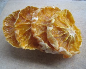 L'orange ou tout agrume séché peut être utilisé dans une tisane ou comme décoration.
