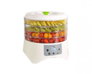 Ce déshydrateur premier prix dispose de 5 plateaux amovibles, d'un minuteur réglable de 1 à 48h et d'un thermostat réglable de 40°C à 70°. Il est plutôt adapté à des débutants.